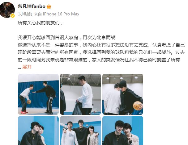 如今曾凡博发声回应重返北京男篮,他表示:“所有关心我的朋友们,我很开心能够回到首钢大家庭,再次为北京而战!”